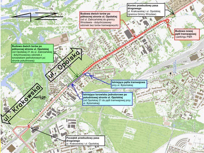 Przedmiotem zamówienia jest opracowanie dwóch wariantów koncepcji dla rozbudowy i przebudowy ulicy Krakowskiej i ulicy Opolskiej we Wrocławiu, na odcinku od węzła na skrzyżowaniu ul. Krakowskiej z al. Armii Krajowej do skrzyżowania ul. Opolskiej i ul. Łąkowej położonej w obrębie gminy Siechnice. Wariant 1 dotyczy zachowania istniejącego układu drogowego, a także rozbudowy jednotorowego odcinka linii tramwajowej do dwóch wydzielonych torów na brakującym fragmencie, od Głubczyckiej do pętli końcowej Księże Małe, wraz z dopuszczeniem ruchu autobusów na torowisku i możliwością wydłużenia wydzielonego torowiska do Krakowskiej, w przypadku możliwości terenowych.