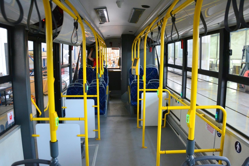 Miejsca na dachu nie ma za wiele ze względu na potrzebę zainstalowania klimatyzacji, systemu sterowania, wszystkich przetwornic oraz pantografu. Wobec tego, żeby zwiększyć możliwość autobusu i póki naciski na oś tylną jeszcze na to pozwalają, umieściliśmy dwie baterie właśnie na zwisie tylnym. Chodzi o to, żeby optymalnie wykorzystać przestrzeń, którą mamy do dyspozycji w pojeździe – i na zwisie tylnym, i na dachu. Zresztą, to nie jest nasz patent, bo sporo firm tak właśnie zagospodarowuje wnętrze. Weźmy na przykład propozycję firmy BYD – Chińczycy ulokowali baterie nie w dwóch, a w trzech miejscach swojego autobusu. Akumulatory znalazły się nawet nad nadkolami przednimi. Aż tak daleko nie poszliśmy, bo uważamy, że właściwie przestrzeni pasażerskiej nie powinno się dotykać – z punktu widzenia funkcjonalnego powinna ona być właściwie bardzo podobna do tego, co oferują standardowe autobusy z dieslem.