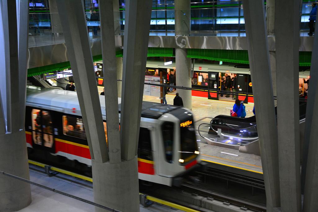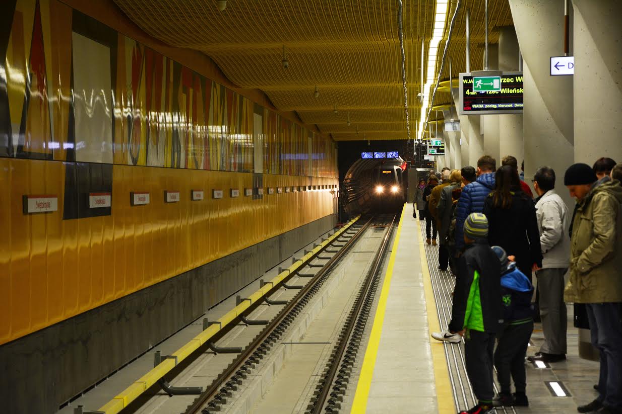 fot. MJZnane są znacznie lepsze układy stacji przesiadkowych, przykładowo grupujące kierunki jazdy, a nie linie. Przy takim rozwiązaniu jeden z peronów mógłby służyć dla pociągów w kierunku centrum (jeden tor dla II linii, a drugi dla III linii), a drugi dla składów od strony centrum (analogicznie jeden tor dla II linii, drugi dla III linii). Dzięki temu najpopularniejsze przesiadki byłyby zapewnione w obrębie jednego peronu. Oczywiście taki układ wymagałby większej pracy inżynieryjnej: dla zapewnienia bezkolizyjności ruchu tunele poszczególnych linii musiałyby mijać się poza stacją na różnych poziomach. Dodatkową zaletą byłaby możliwość wykorzystania obu krawędzi peronowych, nawet przed otwarciem III linii metra – dzięki rozjazdom na dodatkowym torze można byłoby podstawiać drugi pociąg np. do obsługi wzmożonego ruchu w czasie imprez masowych.