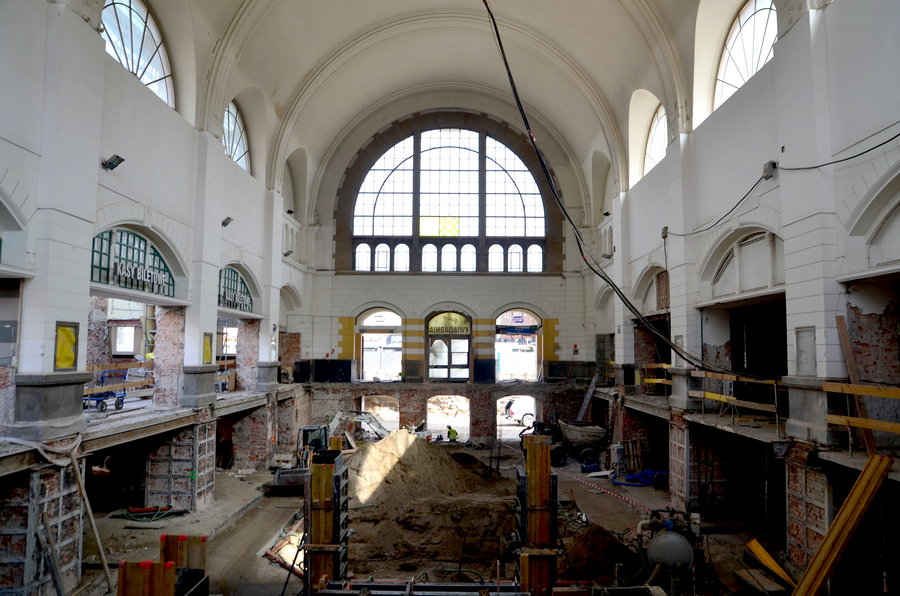 W holu zdemontowano posadzkę oraz witryny kas biletowych. Obecnie są w nim wykonywane fundamenty pod przyszłe schody ruchome i windę. Nad częścią pomieszczeń znajdujących się poza holem wykonano nowe żelbetowe stropy. Roboty są również prowadzone w części budynku zlokalizowanej na południe od holu głównego. Trwają tam prace polegające na wymianie oraz renowacji więźby dachowej i roboty związane z wykonaniem nowego poszycia dachowego.