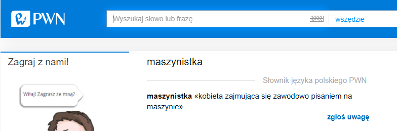 – Zaciekawiło mnie, które słowniki języka polskiego PWN odnotowują jedno znaczenie maszynistki. Według mojego rozeznania robią tak